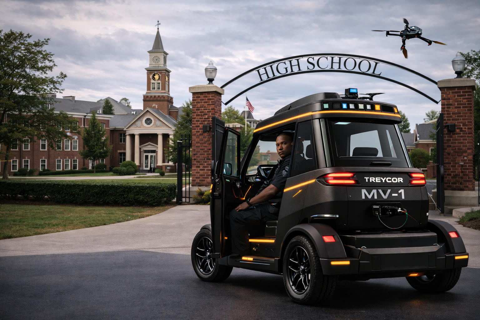 MV-1 transforms mobility into active patrol — integrating live monitoring, drone deployment, and real-time command connectivity into every shift.