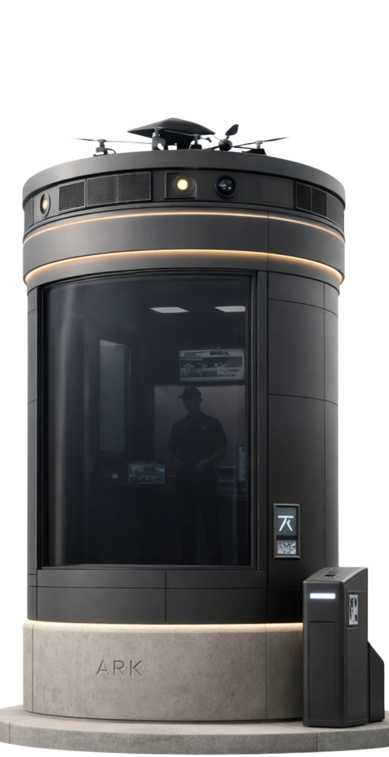 Beyond the Guard Shack. A modern command tower integrating human presence, autonomous systems, and centralized oversight for continuous, coordinated protection.